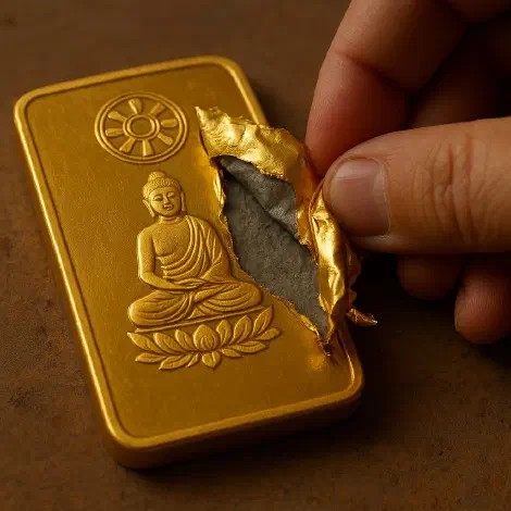 शुद्ध स्वर्ण विलुप्त नहीं होता, जब तक उसका जाली प्रतिरूप (=नकली स्वर्ण चलन में) न आ जाए। उसी तरह, शुद्ध धर्म भी विलुप्त नहीं होता, जब तक उसका जाली प्रतिरूप न आए।