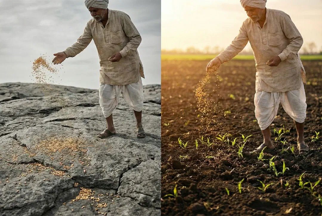 बीज (कर्म) तो एक ही था, लेकिन क्या उनका परिणाम (फल) एक जैसा होगा? नहीं। एक शायद अंकुरित होकर ही मर जाएगा, जबकि दूसरा विशाल वृक्ष बनकर हजारों मीठे फल देगा।